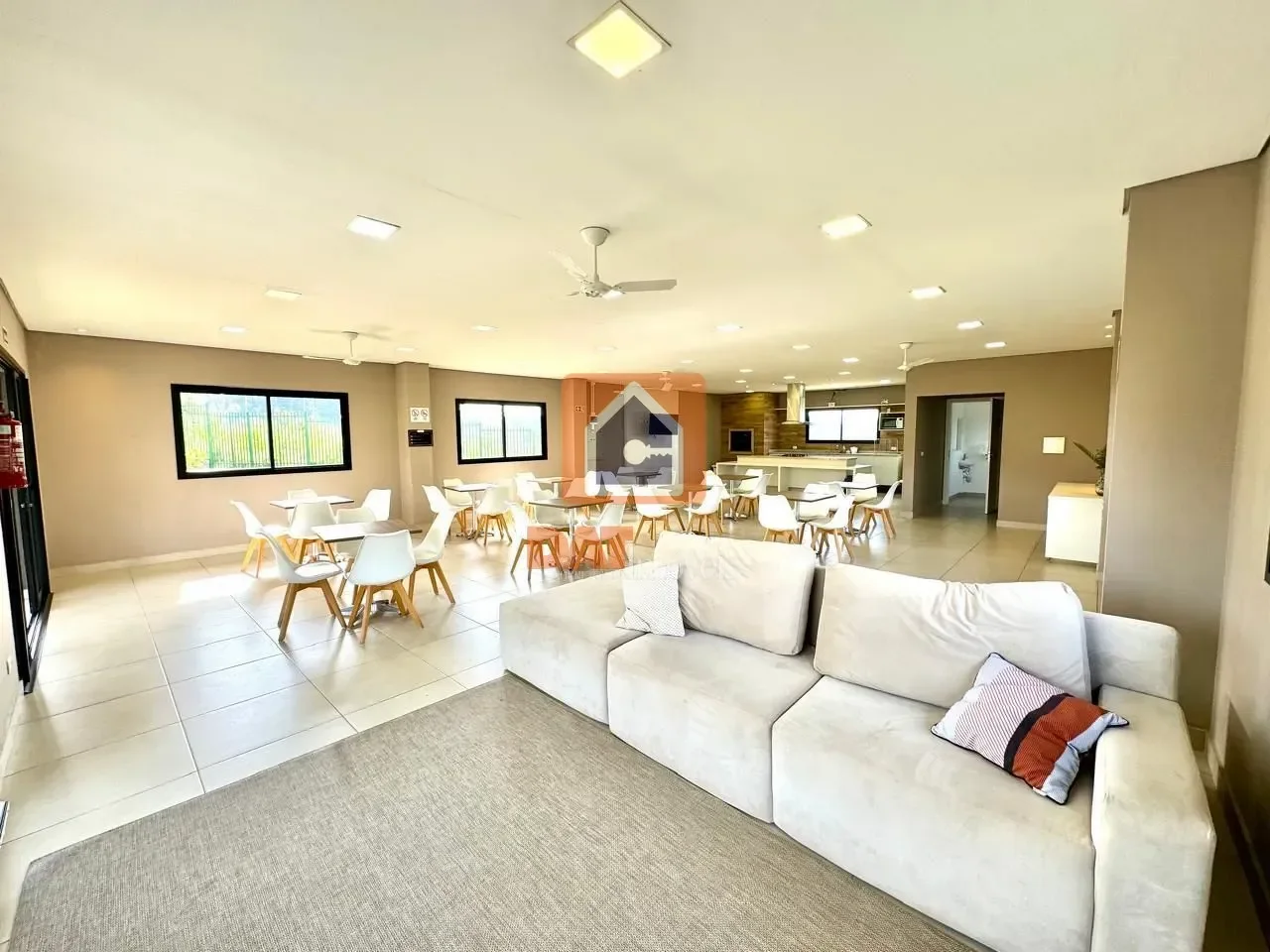 Com sala de estar, sala de jantar, cozinha com área gourmet em conceito aberto;