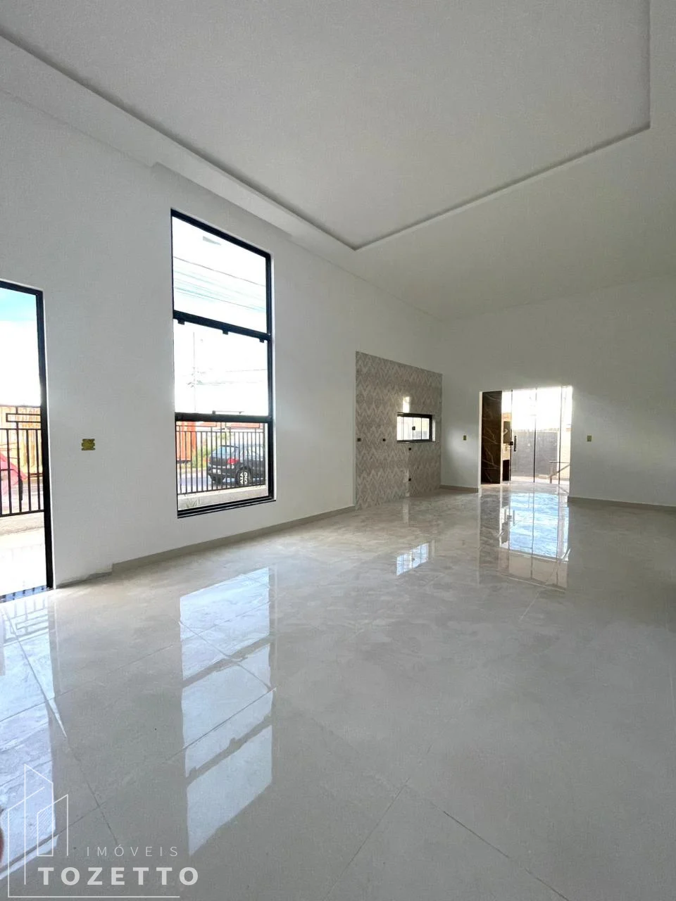 Pé-direito alto na sala e cozinha, trazendo mais iluminação e sofisticação