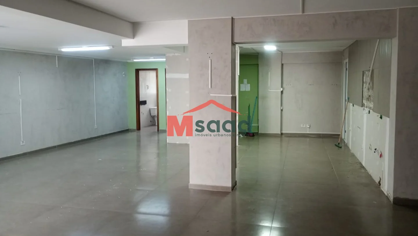 Sala comercial térrea no Edifício Acapulco, medindo 120 m2 , contendo 2 banheiros e uma sala ampla.