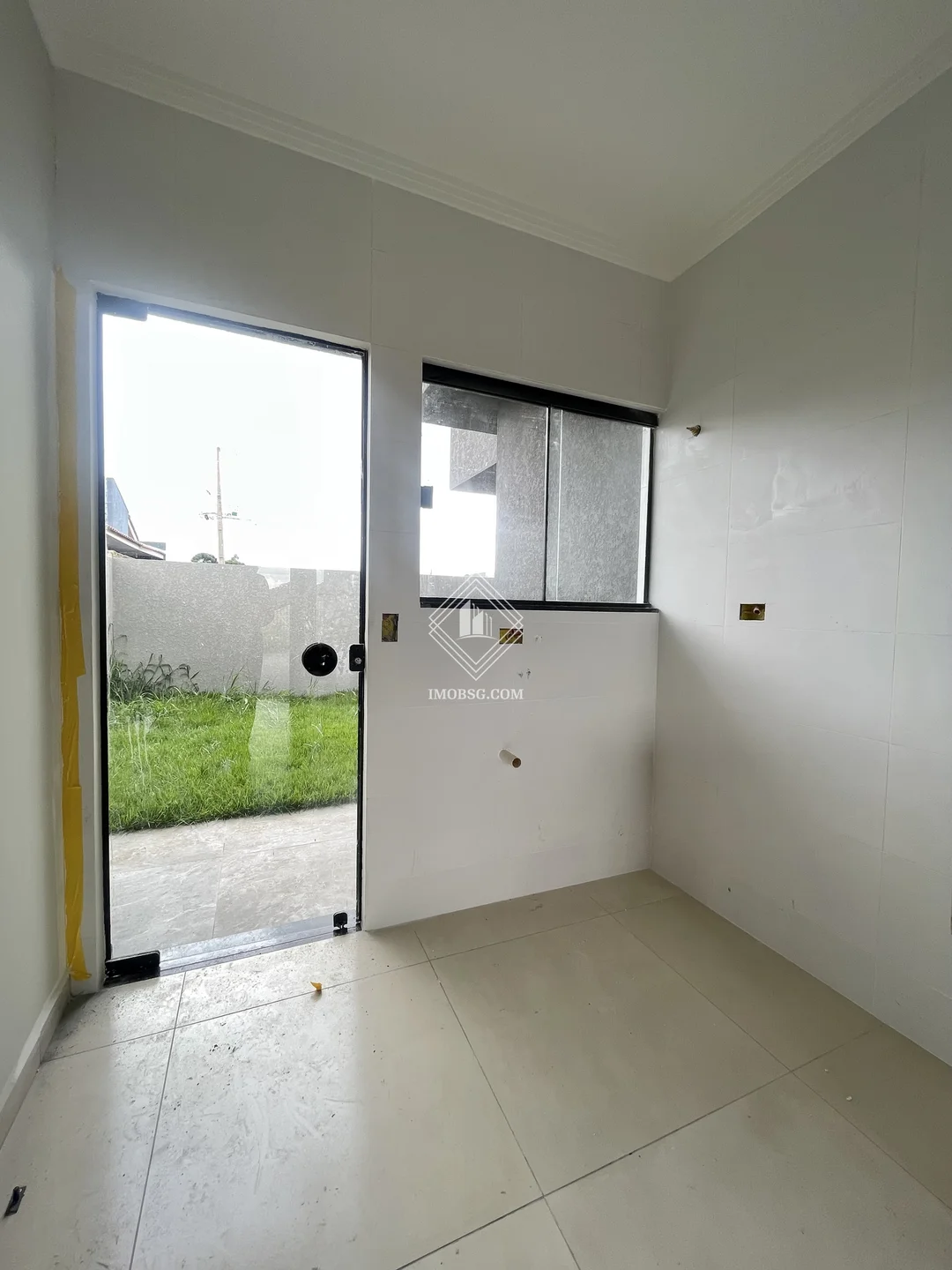 Passagem lateral e área de serviço com cobertura;