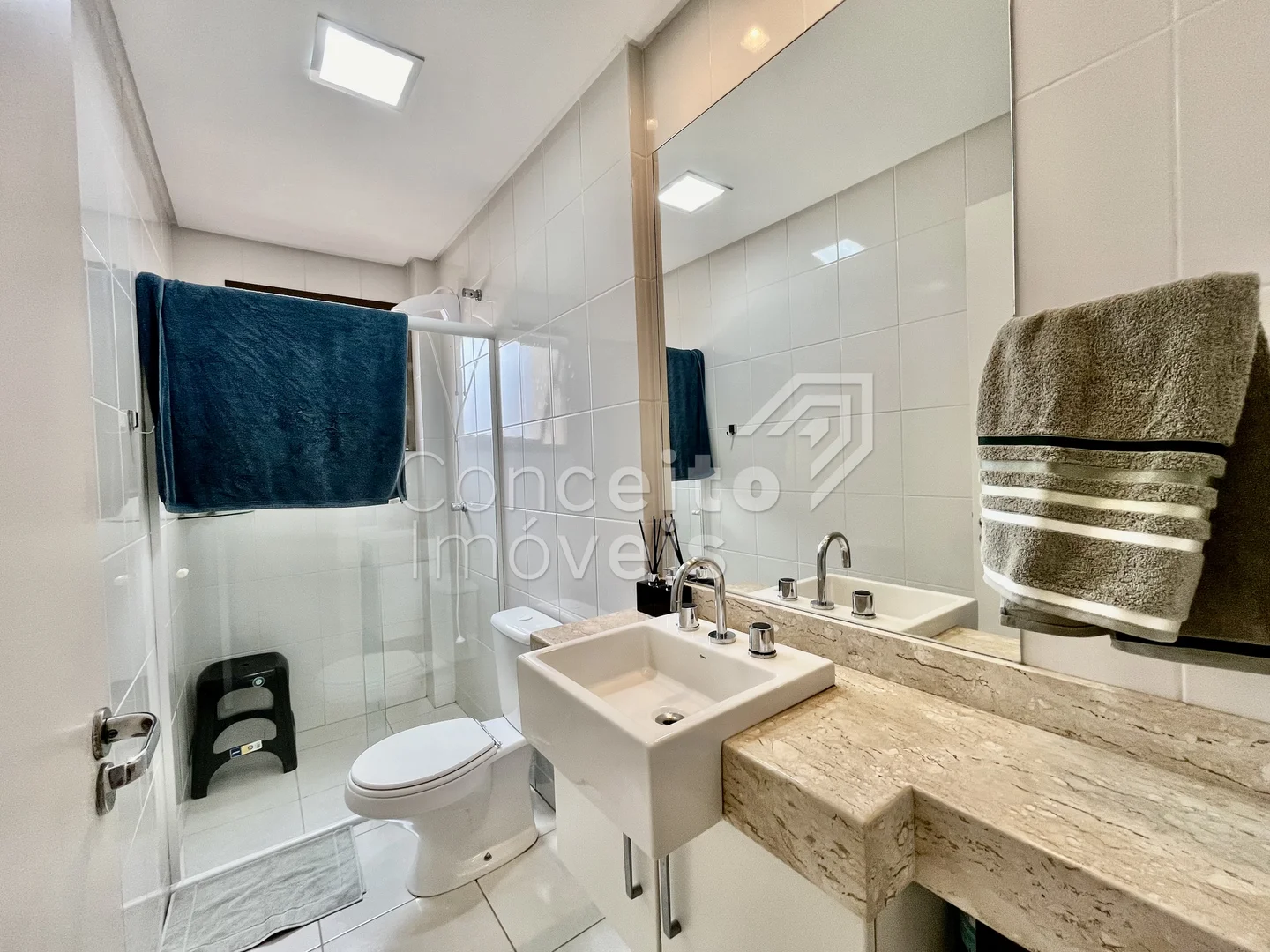 ✅ Banheiro social com armário, espelho e box
