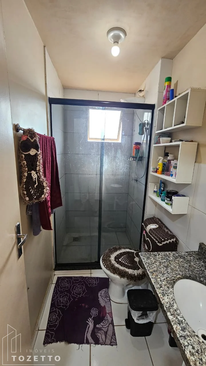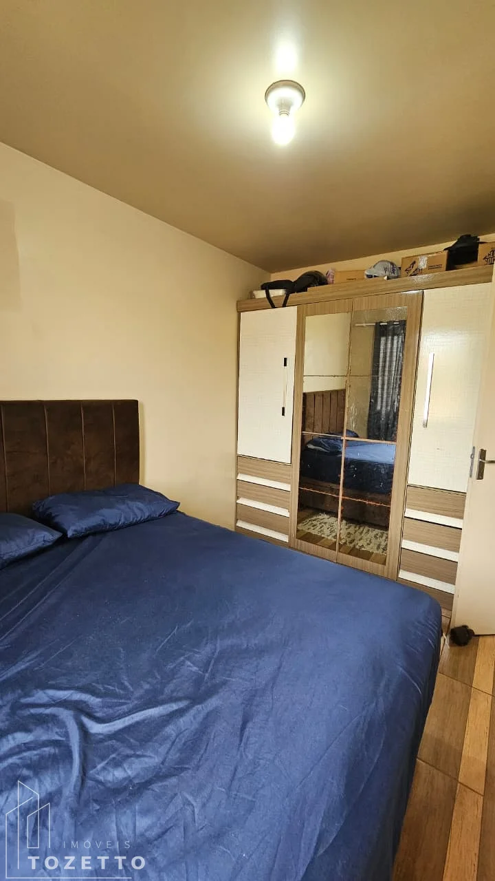 3 Quartos,sala e cozinha conjugada,1 banheiro com box, sacada com churrasqueira.