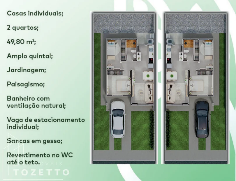 – 2 dormitórios com 49,80m2