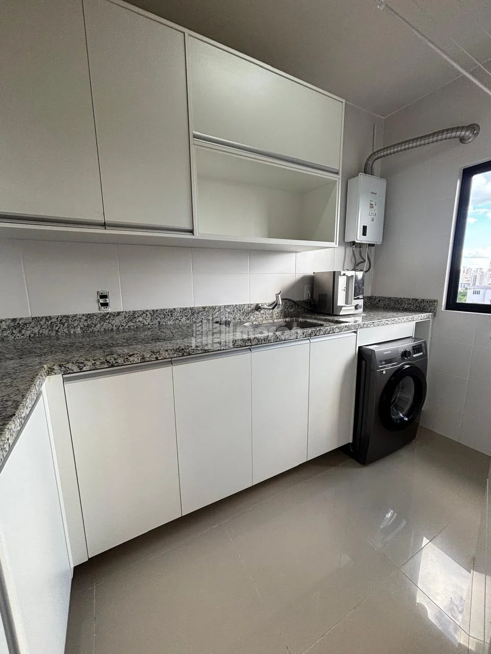 - Lavanderia separada com armários e máquina lava e seca