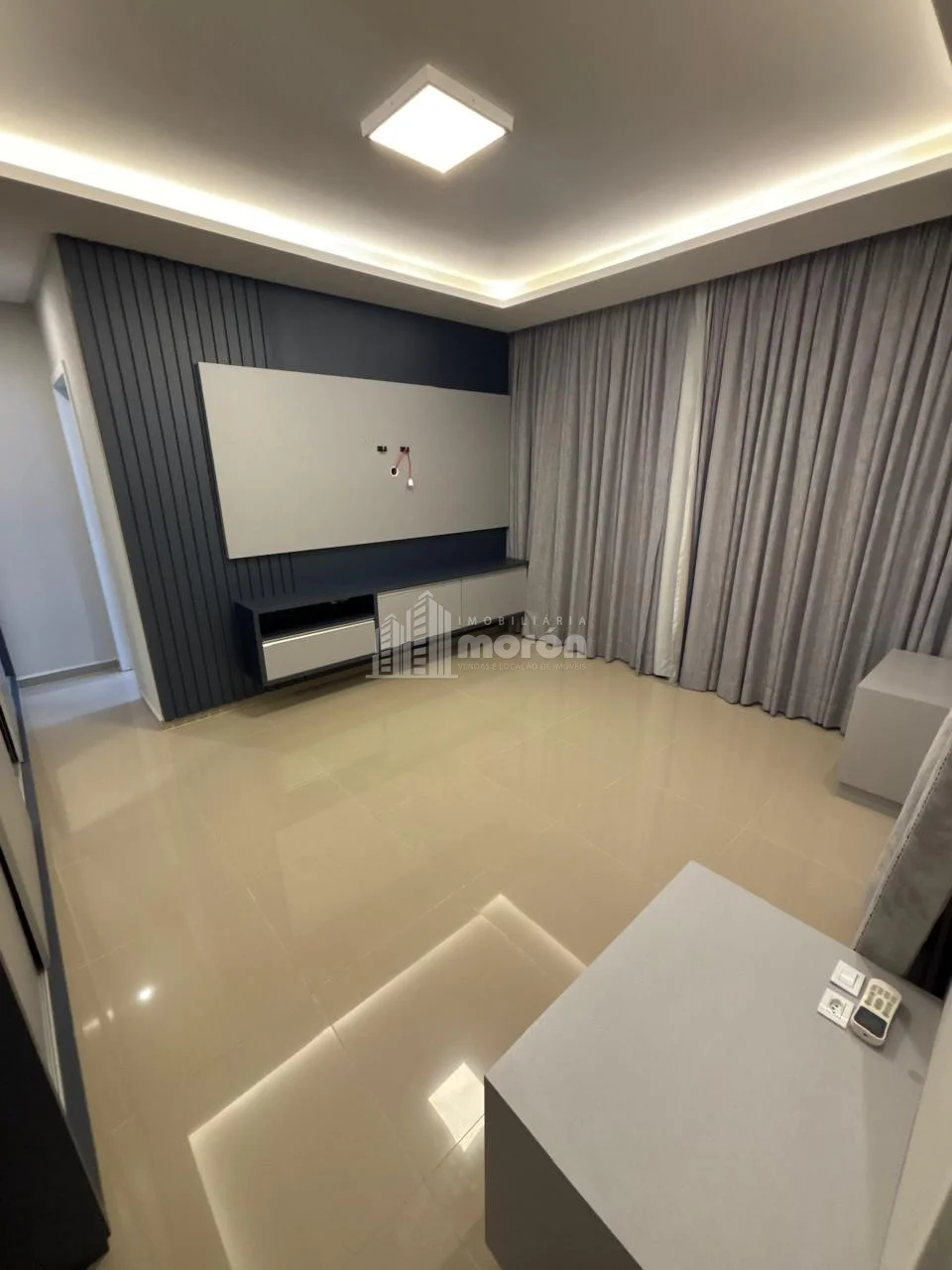 - Sala de estar com painel de TV
