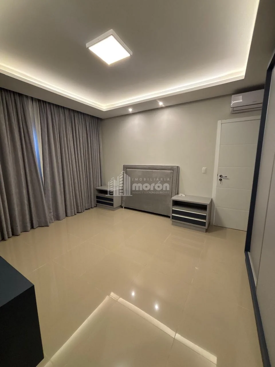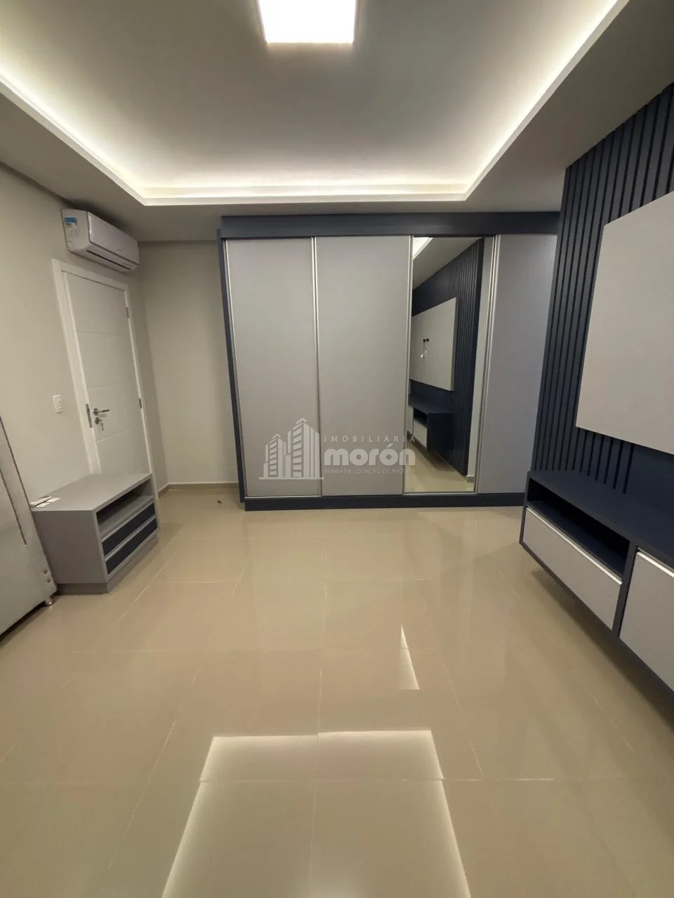 - 1 suíte com armários planejados, cabeceira e painel de TV