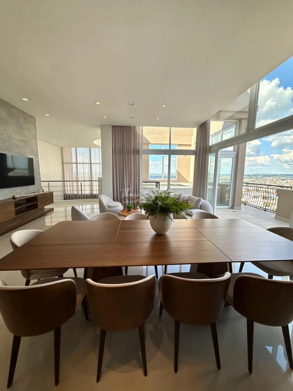 Living espaçoso com integração entre salas de estar e jantar