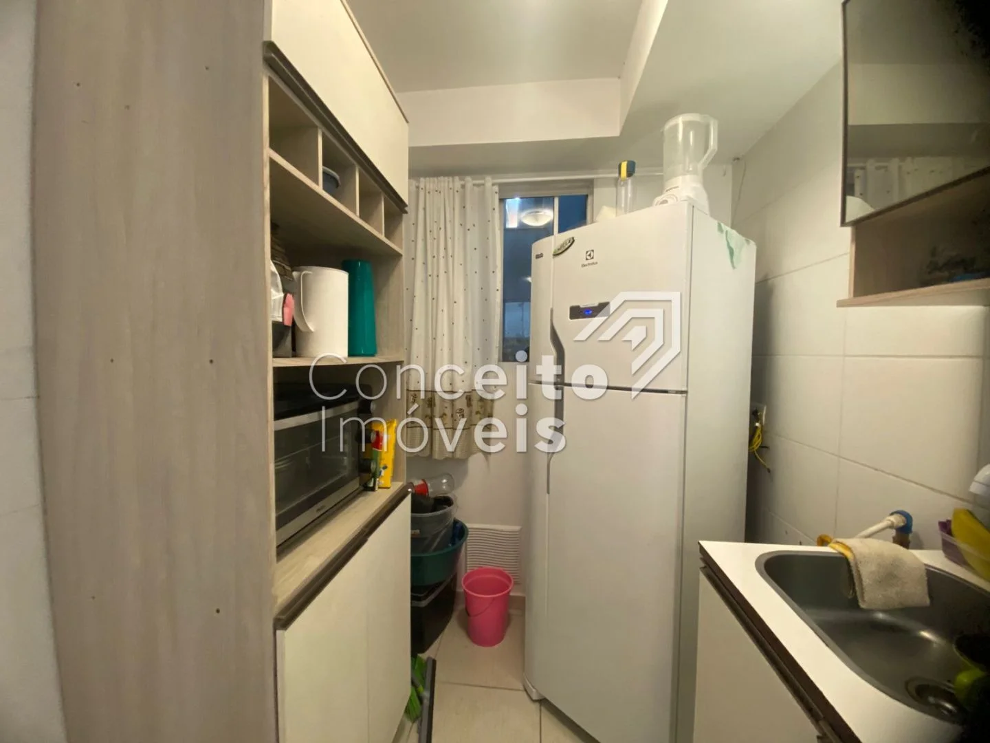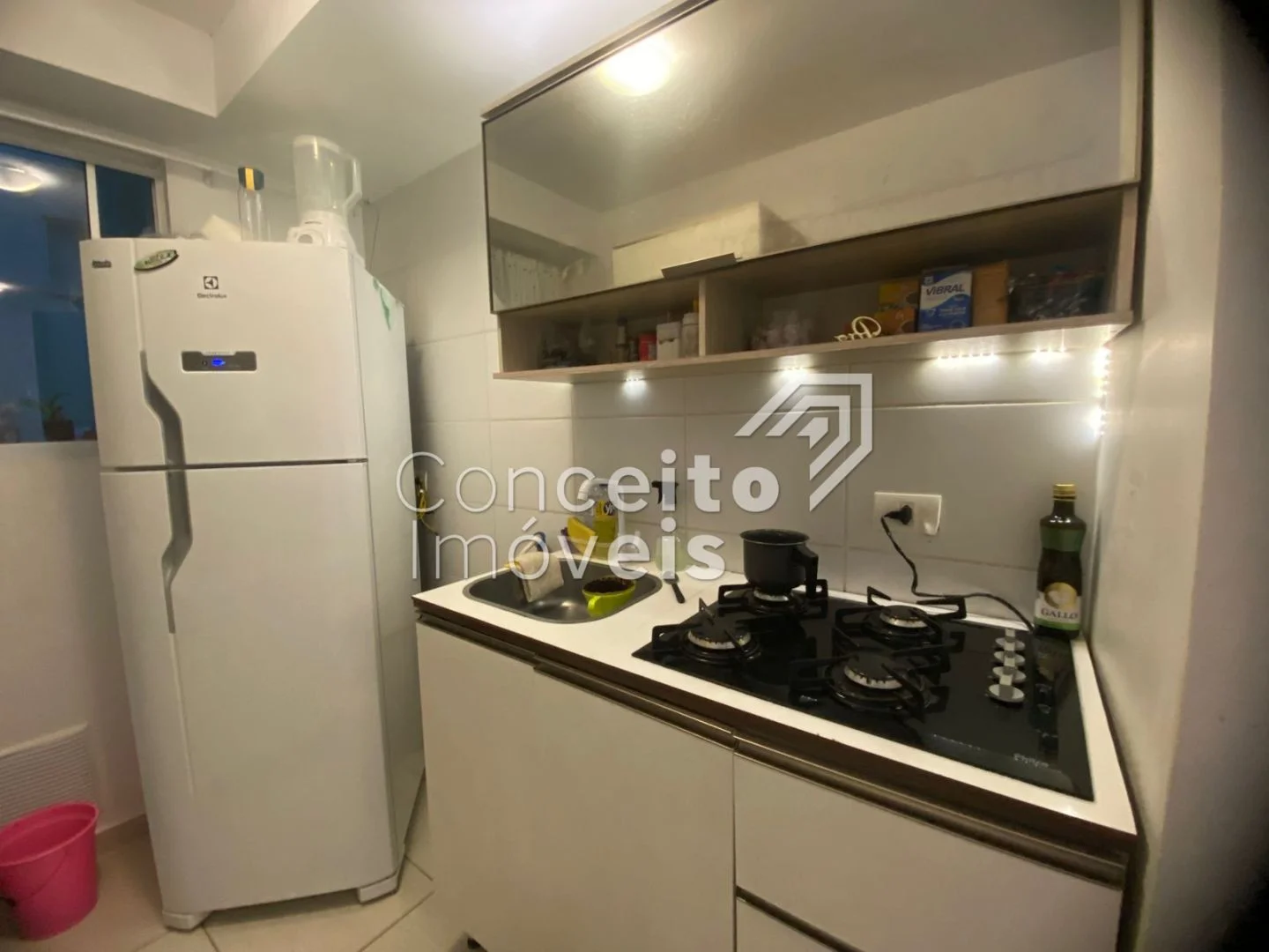 ✅ Cozinha equipada com armários, geladeira e cooktop