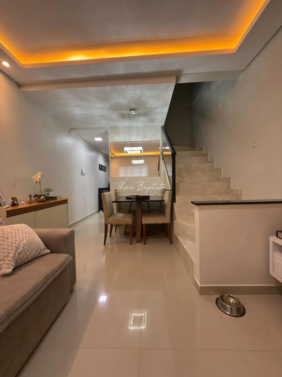 Primeiro pavimento: sala de TV e jantar integradas, cozinha, lavabo e um charmoso espaço gourmet.