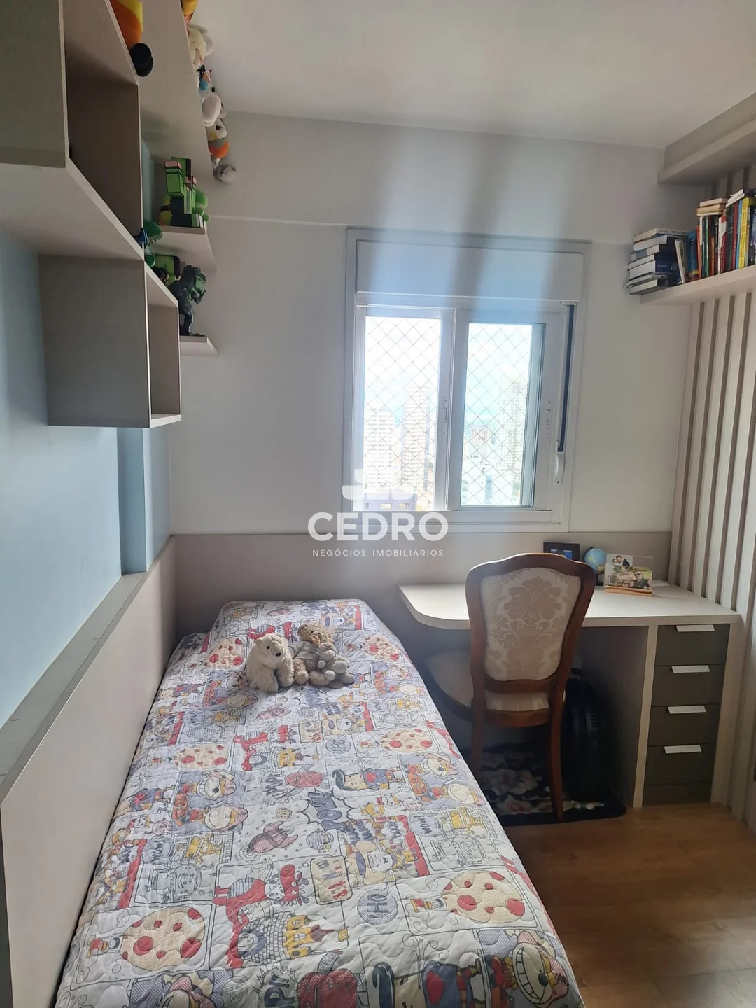 Quarto de solteiro com móveis planejados 📚