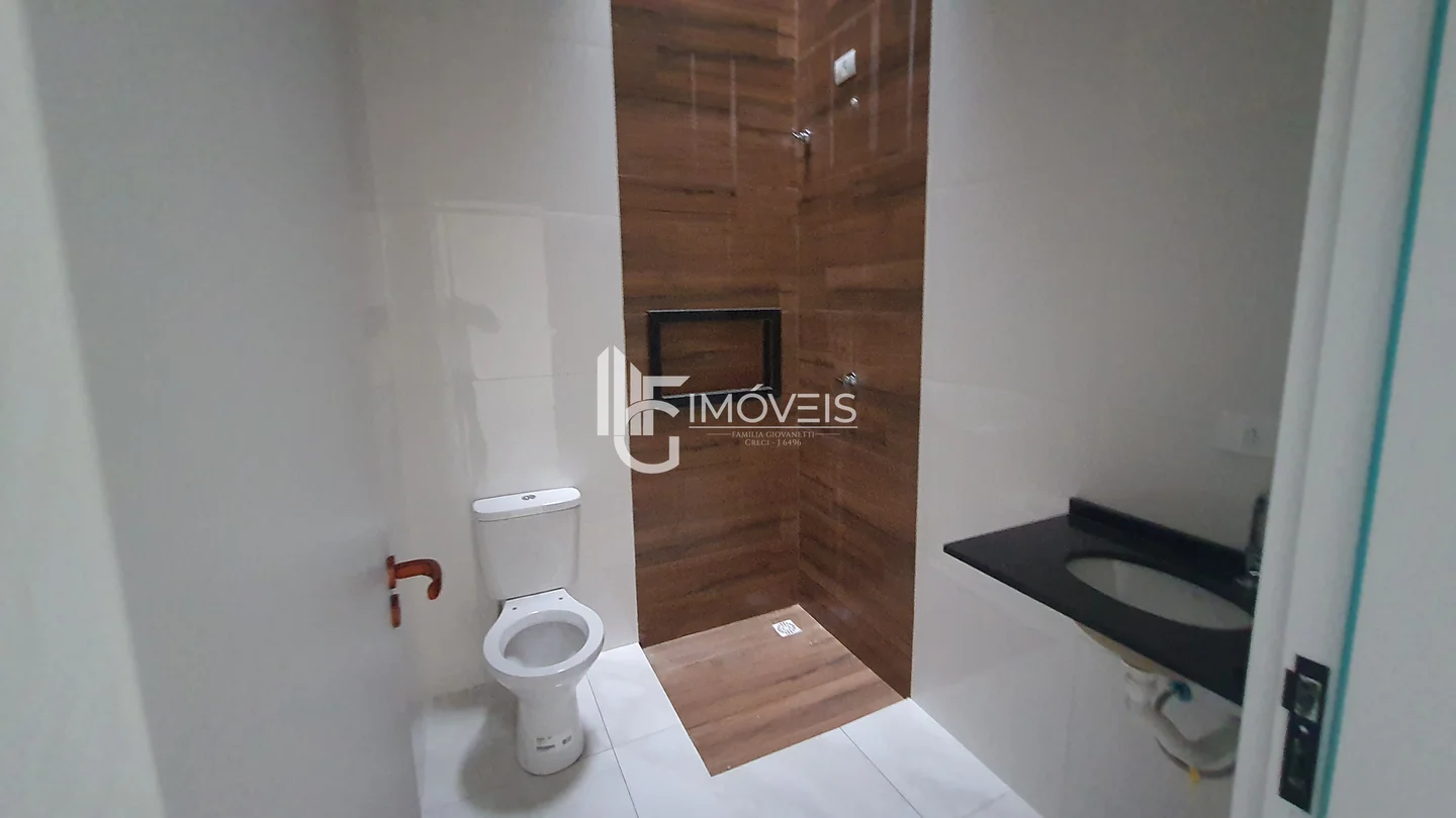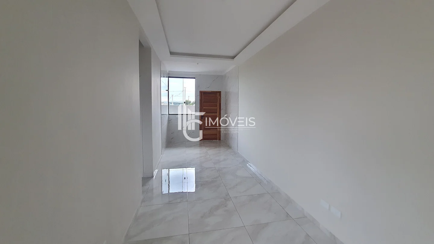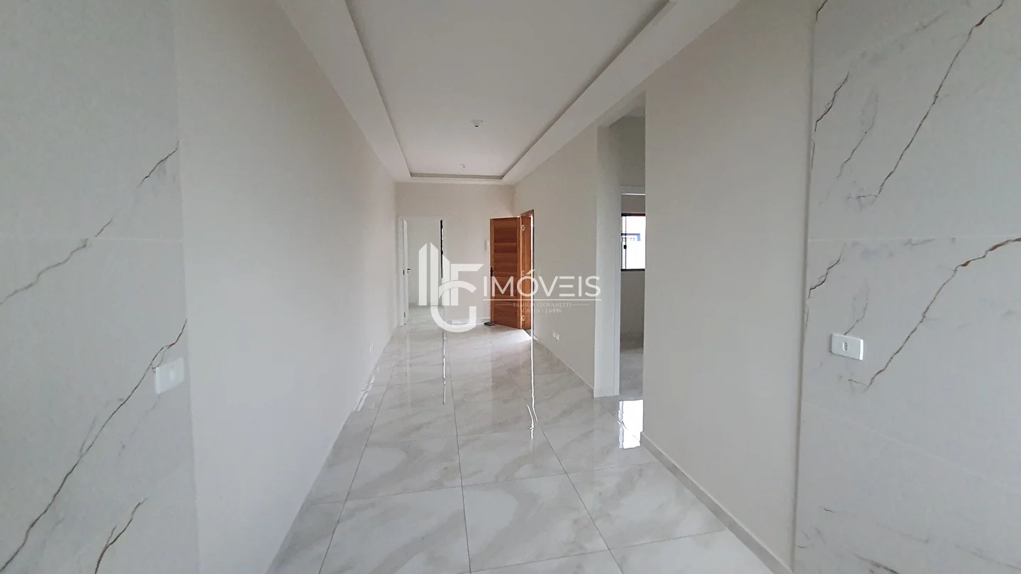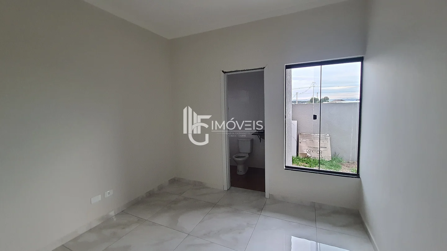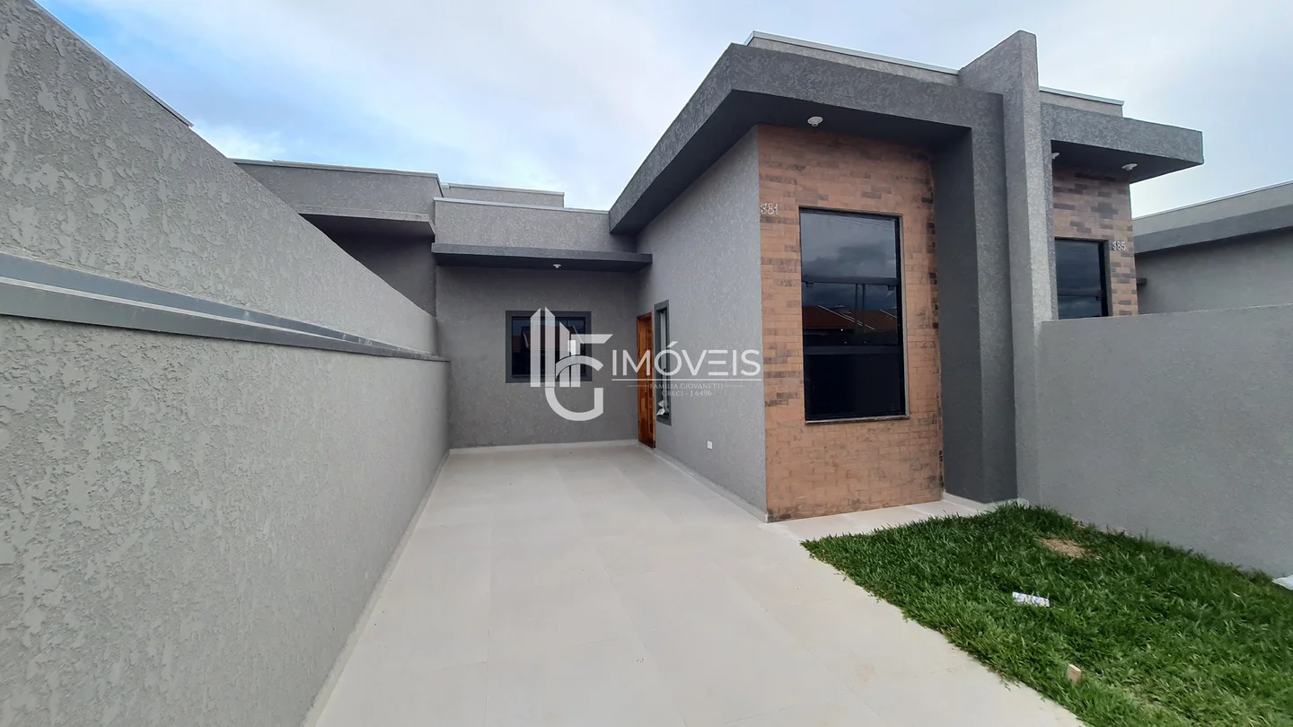 Casa a venda com fachada moderna, pé direito duplo, contendo 3 quartos, sendo 1 suíte, sala, cozinha, banheiro, área de serviço, vaga de garagem.