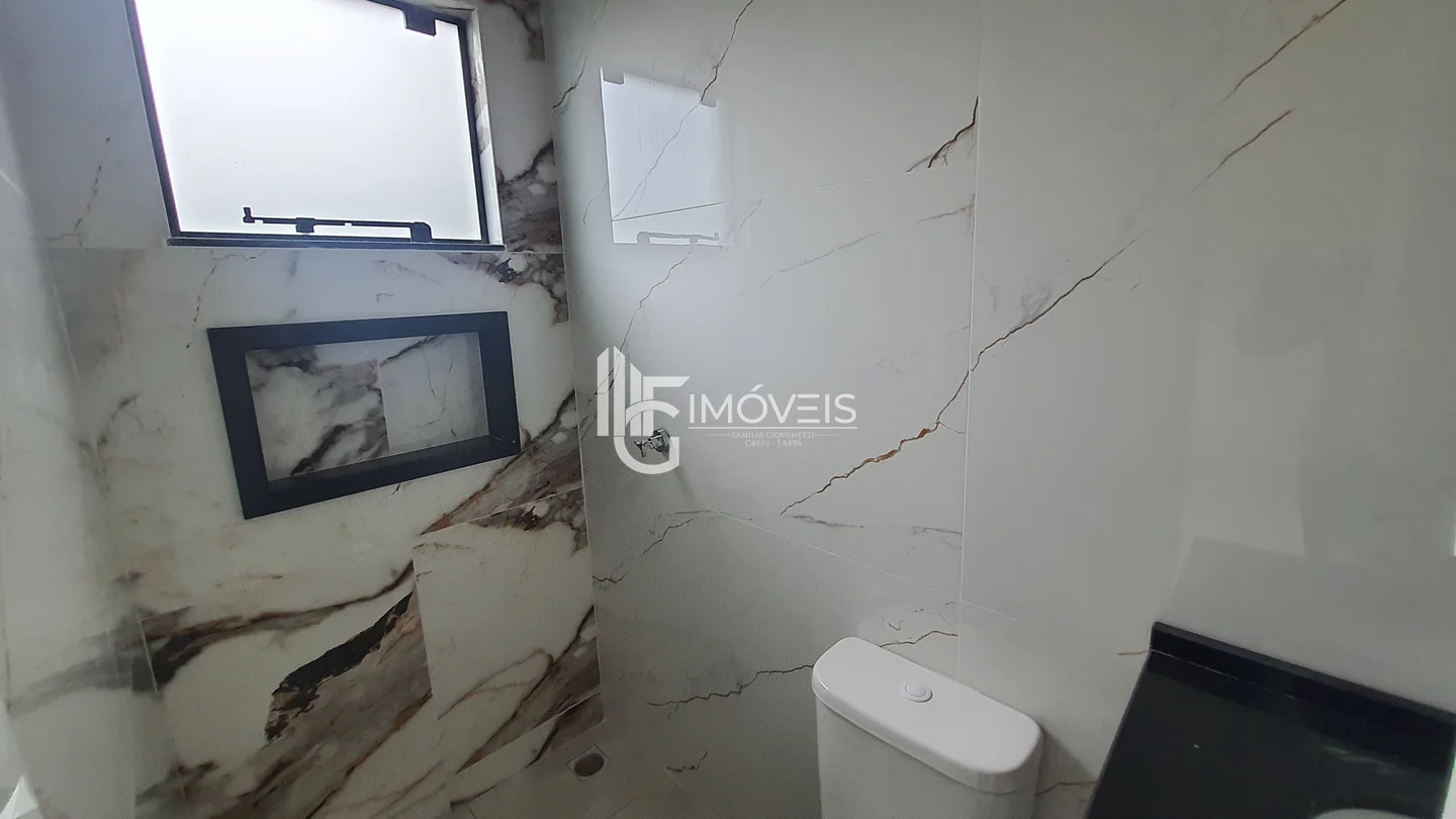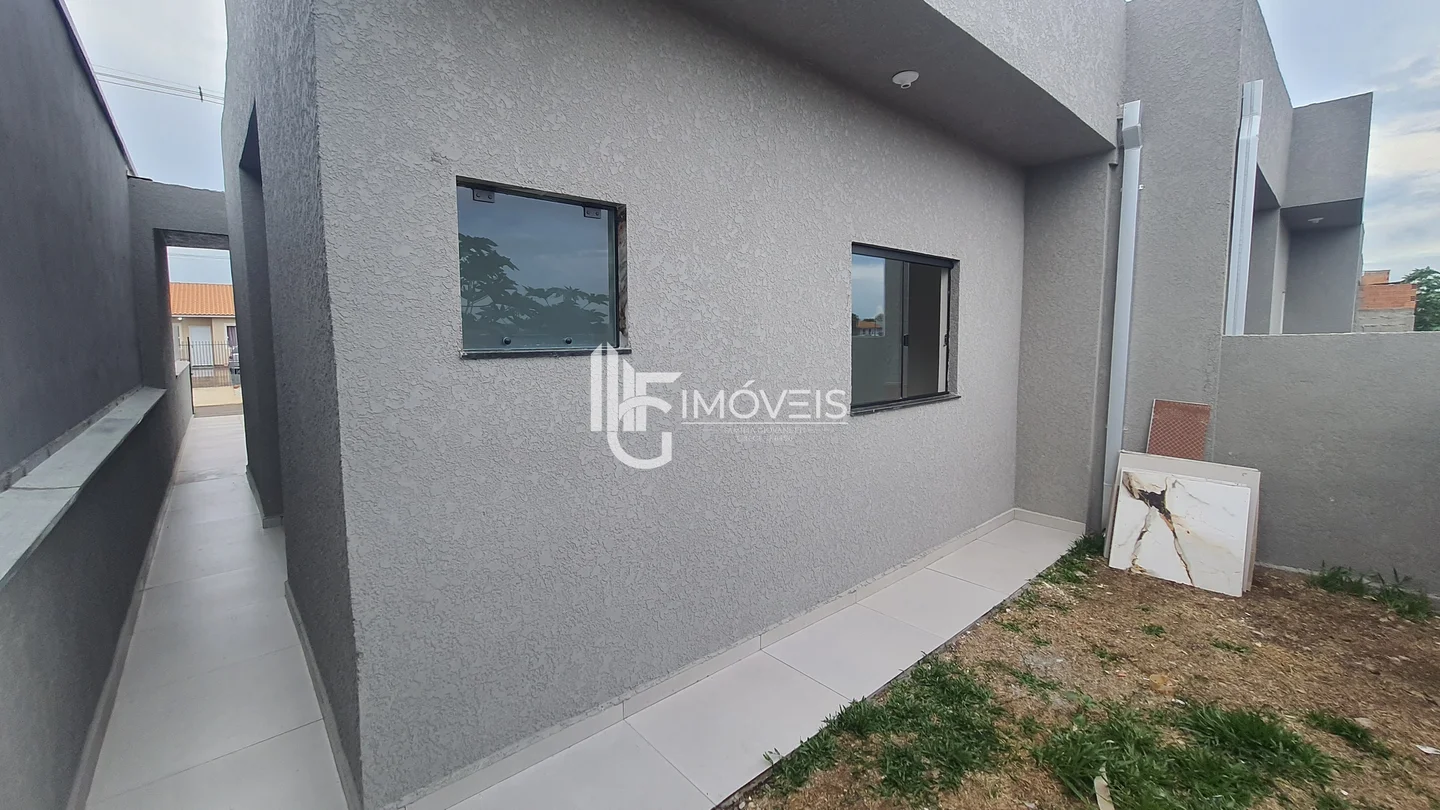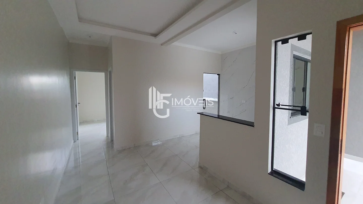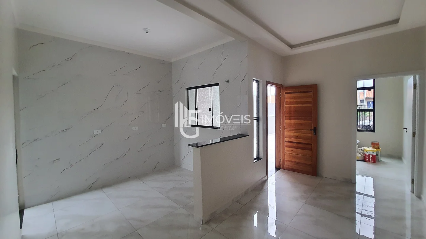 Casa a venda com fachada moderna, pé direito duplo, contendo 2 quartos, sendo 1 suíte, sala, cozinha, banheiro, área de serviço, vaga de garagem.