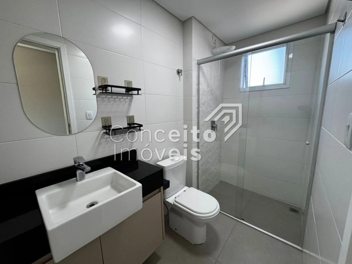 ✅ Banheiro social com box e chuveiro e armário planejado