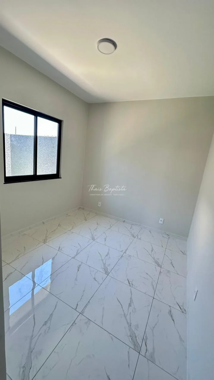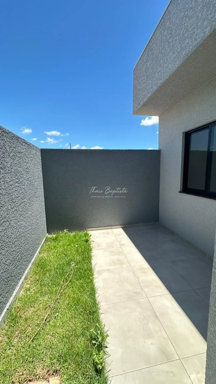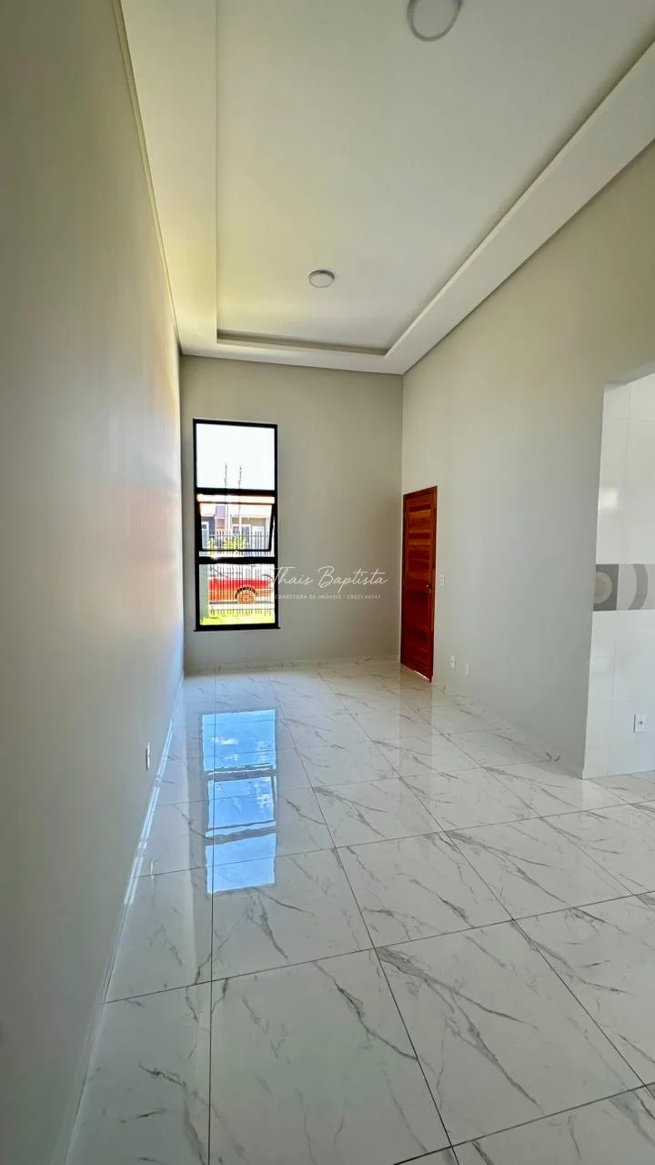 Casa em alvenaria convencional Laje ,Pé direito duplo na sala de estar e sala de jantar com detalhes em gesso,acabamentos em Esquadrias de Alumínio preto.Box e Nicho no banheiro área de Serviço coberta,Espaço na lateral ,frente com espaço para dois carros Pintura toda Projetada calçada revestido até o portão.