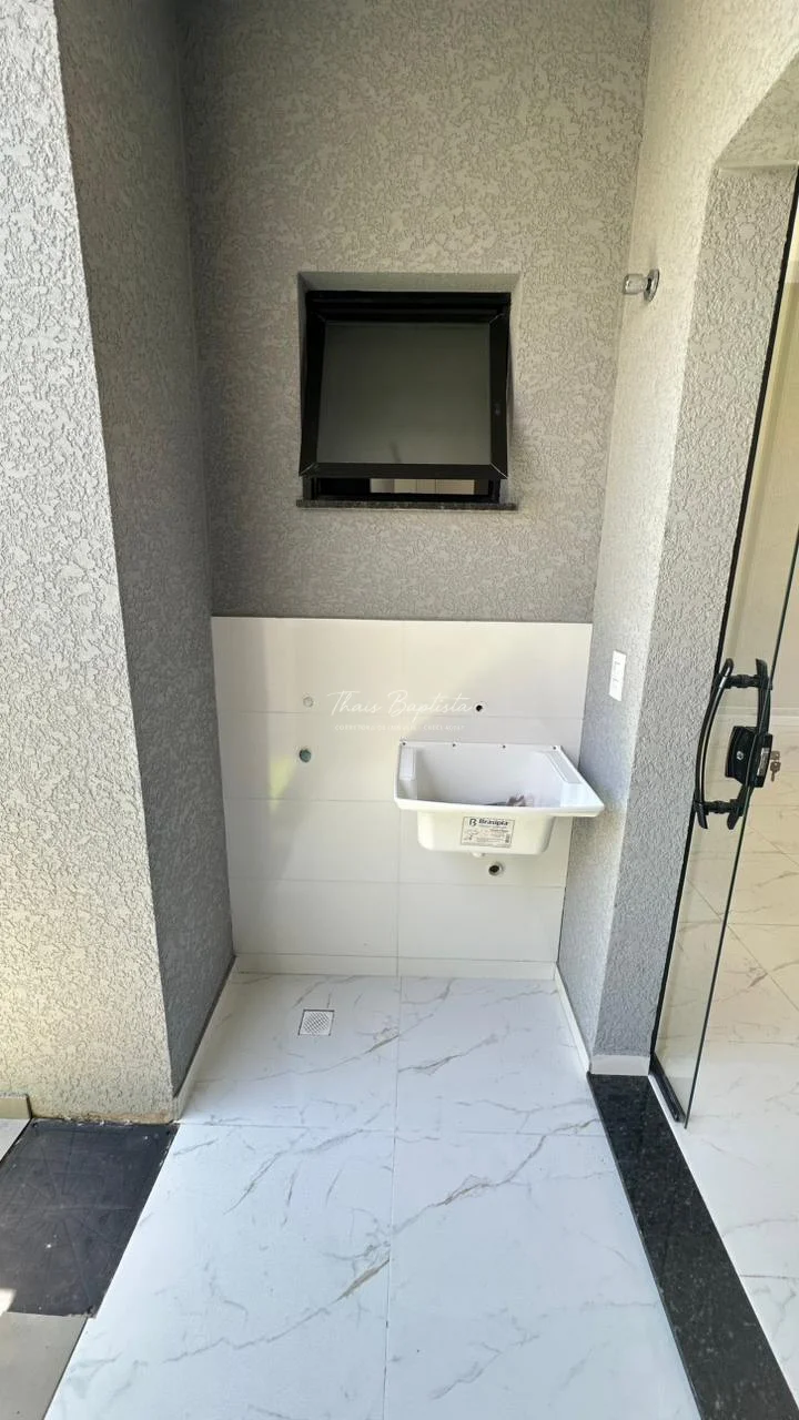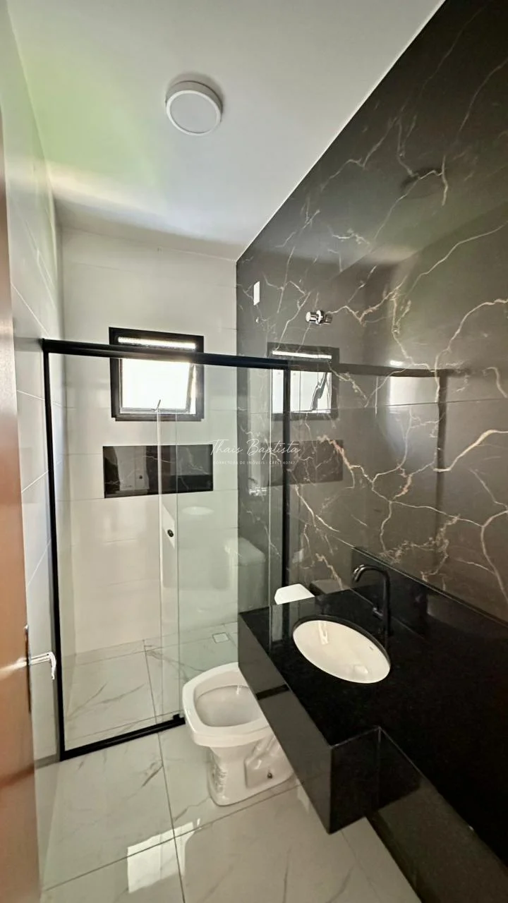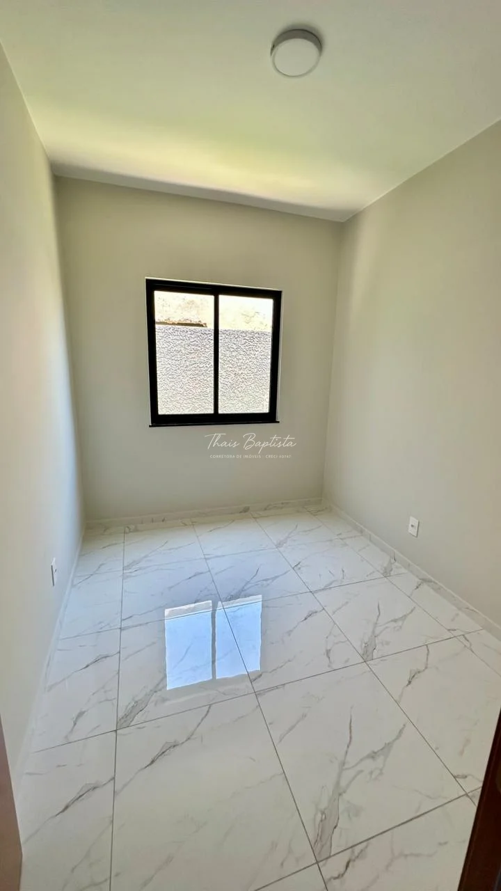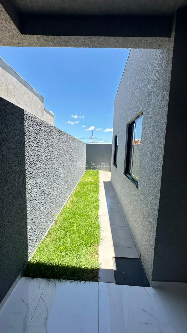 Casa em alvenaria convencional Laje ,Pé direito duplo na sala de estar e sala de jantar com detalhes em gesso,acabamentos em Esquadrias de Alumínio preto.Box e Nicho no banheiro área de Serviço coberta,Espaço na lateral ,frente com espaço para dois carros Pintura toda Projetada calçada revestido até o portão.