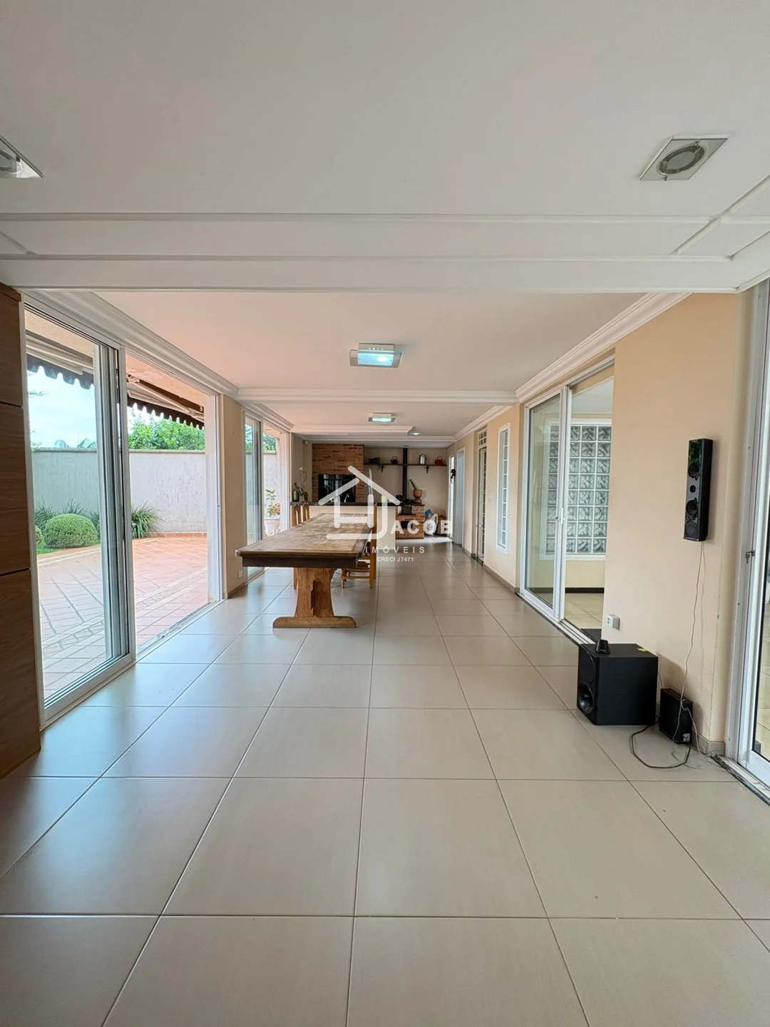 Convivência: Sala ampla conectada diretamente a um espaçoso jardim.