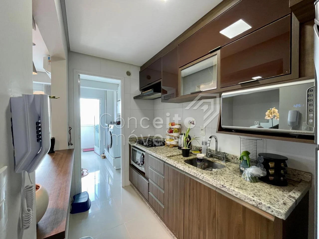 ✅ Cozinha com móveis planejados, fogão cooktop e bancada em granito