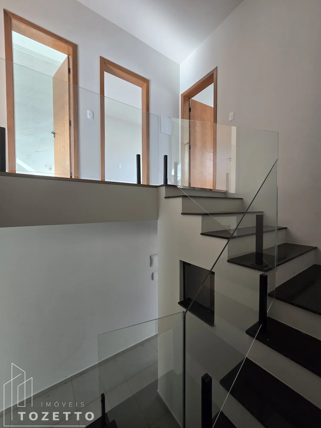 - Piso superior: 2 amplos dormitórios com preparação para ar condicionado e piso laminado, 1 suíte com sacada, frente pra rua, piso laminado e amplo banheiro, também conta com preparação para ar condicionado, 1 banheiro social. Escada com para peito em vidro, degraus largos e espaçosos, sem sofrimento no momento da mudança!