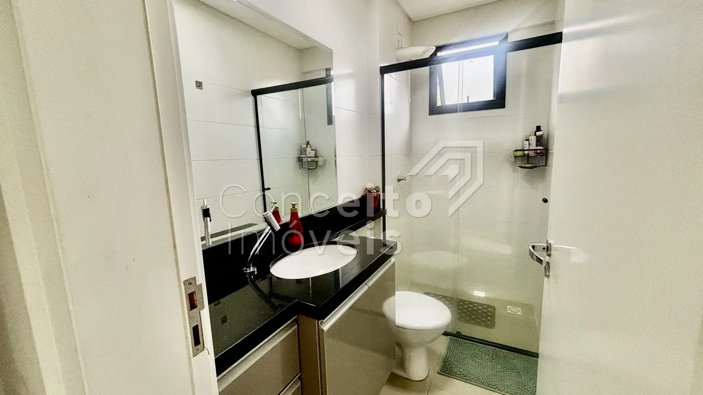 ✅ Banheiro social com armário, espelho, box e chuveiro