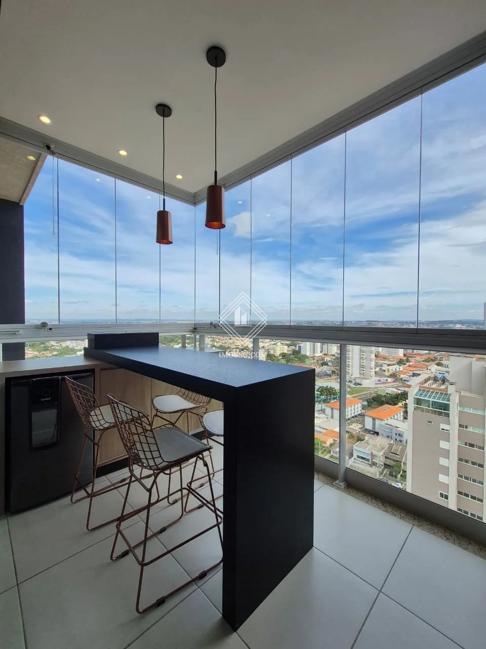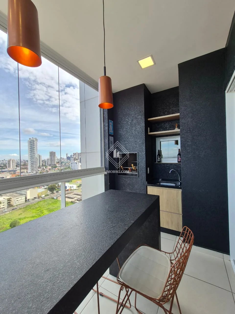 Sacada com churrasqueira, fechada em vidro