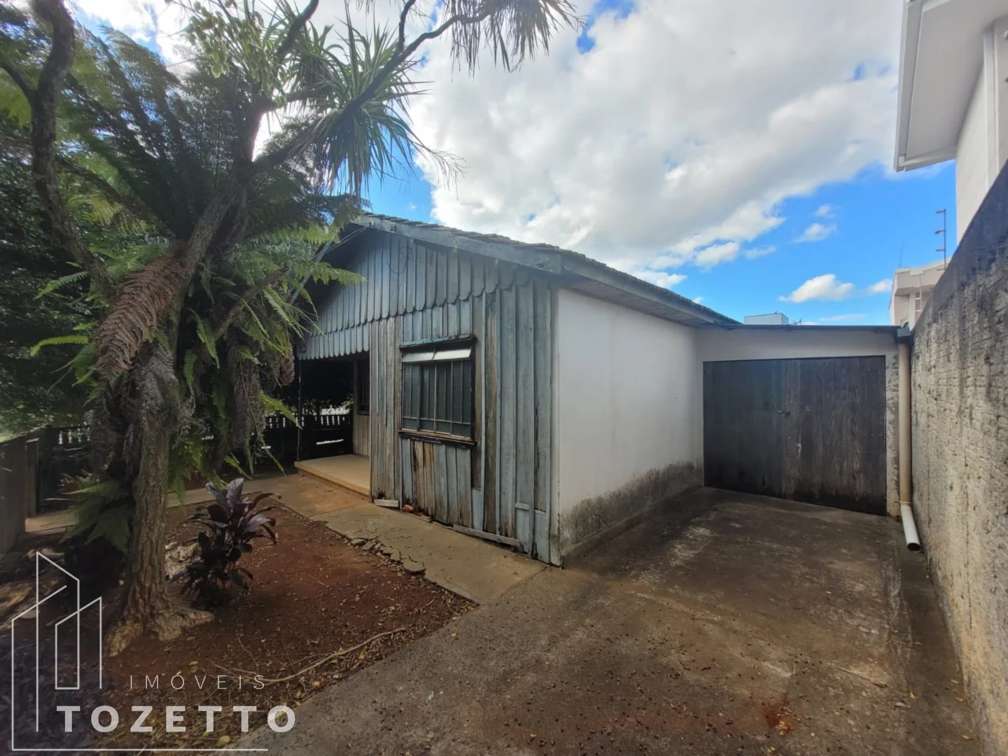 Terreno plano, com residência de madeira.